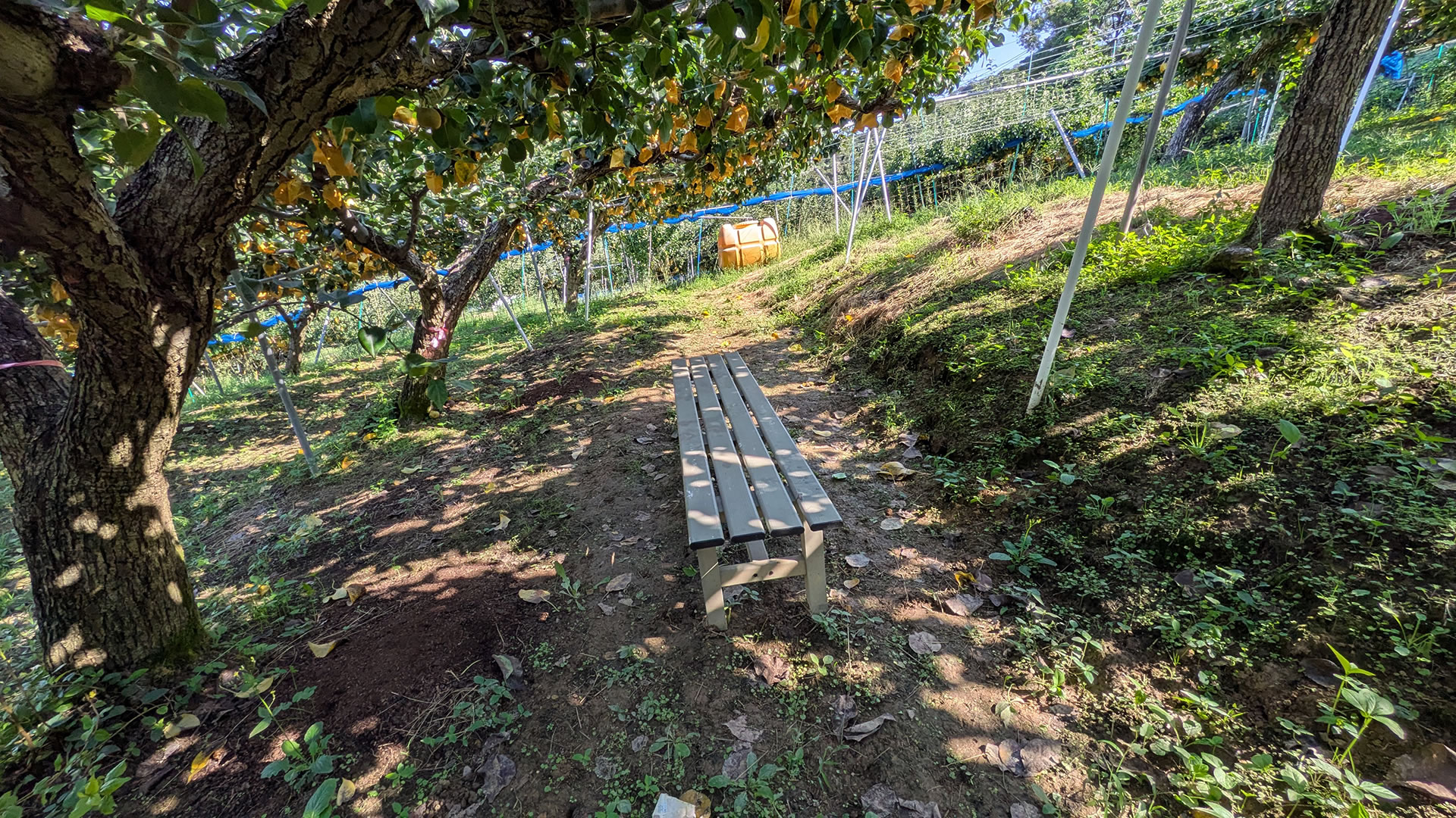 梨園の人に言ったら、家の日陰に駐めさせて貰えました。