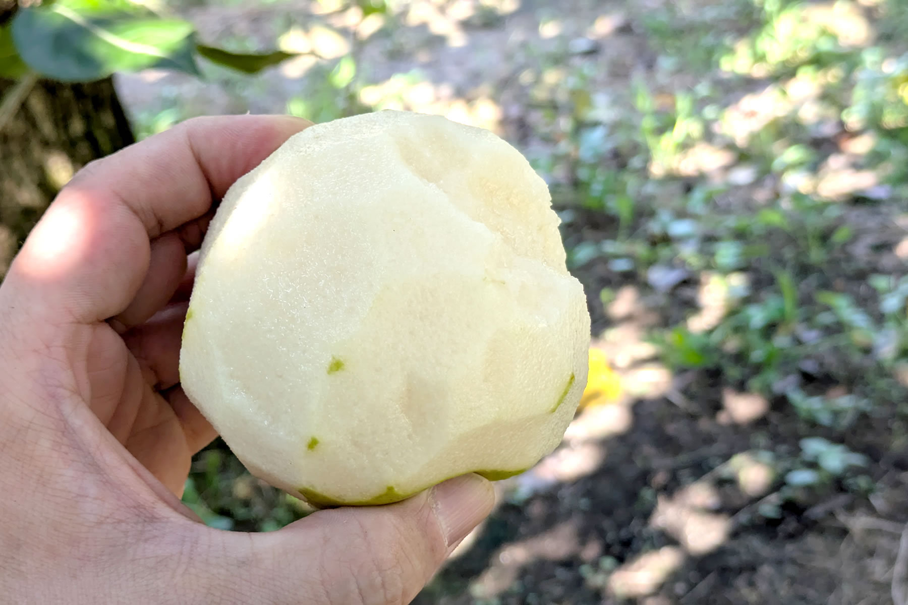 それでは、もぎたての梨を食べてみたいと思いますが・・
