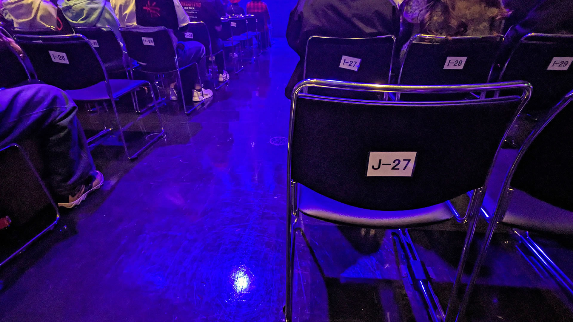 右寄りの最前列から10番目くらいの通路側の席だったので