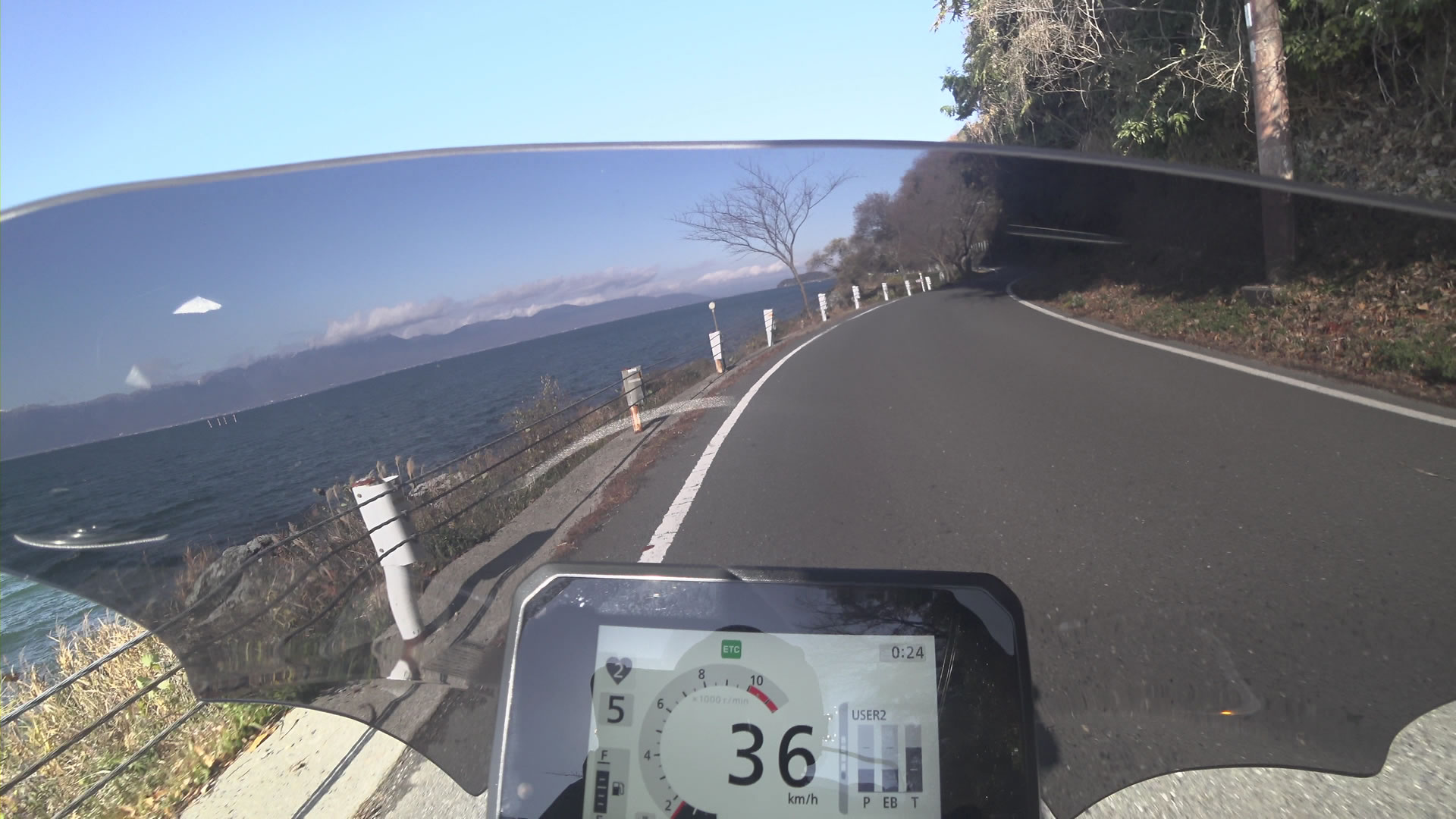 この琵琶湖の南側に面した道は信号もほとんど無いので