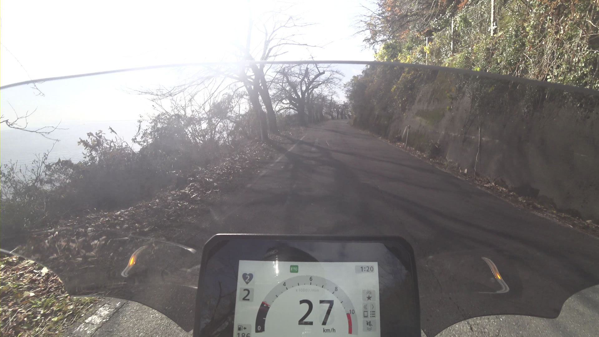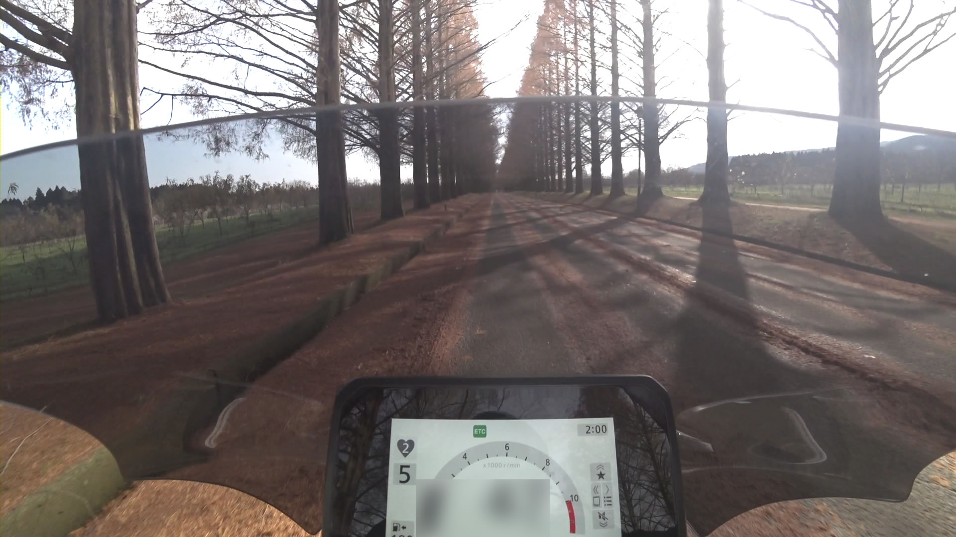 枯れ葉を跨ぐ時は、ハンドルを真っ直ぐにしないと