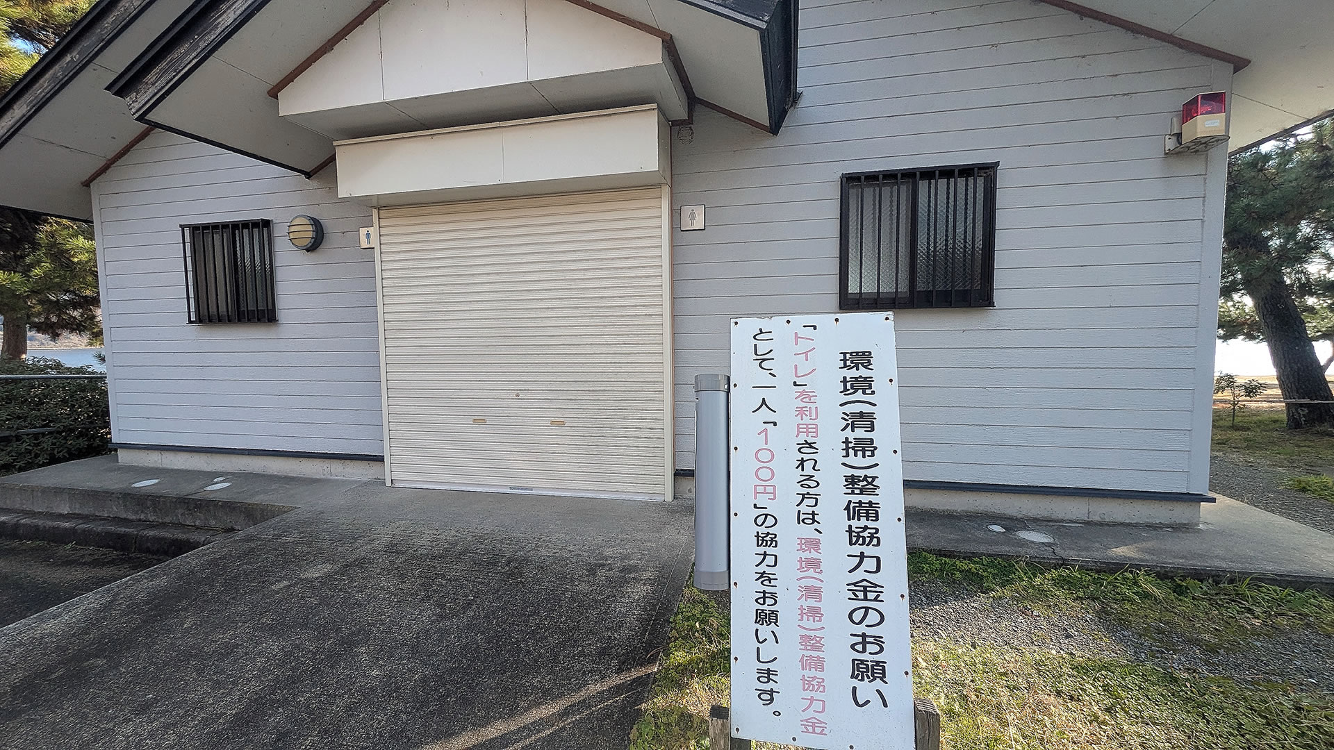 すぐ近くに公衆トイレの表示があったので助かりましたわ・・