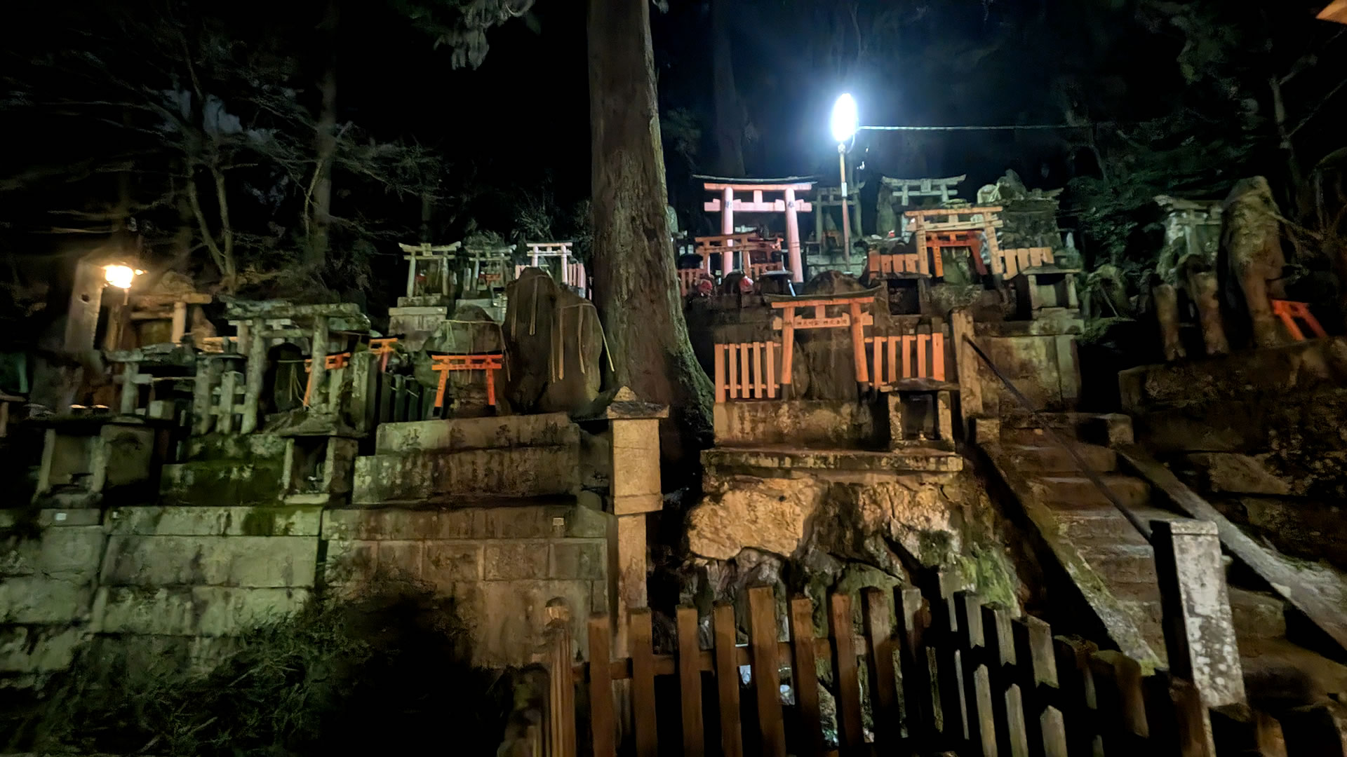 真夜中の千本鳥居は幻想的というか