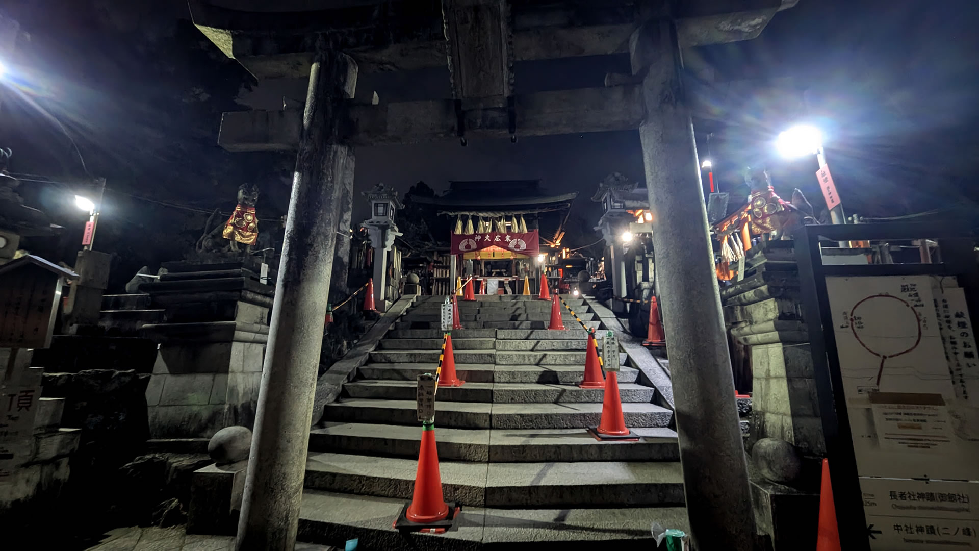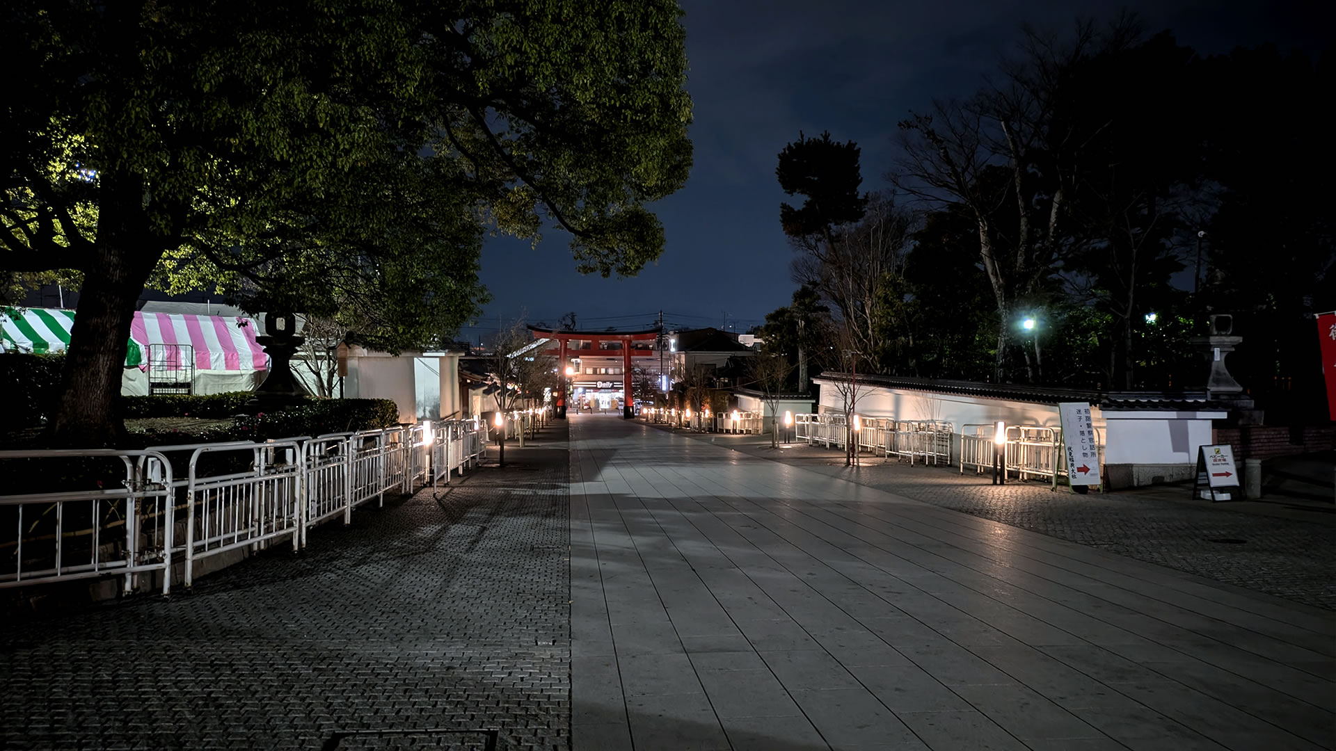 鳥居の外に照明がある所では