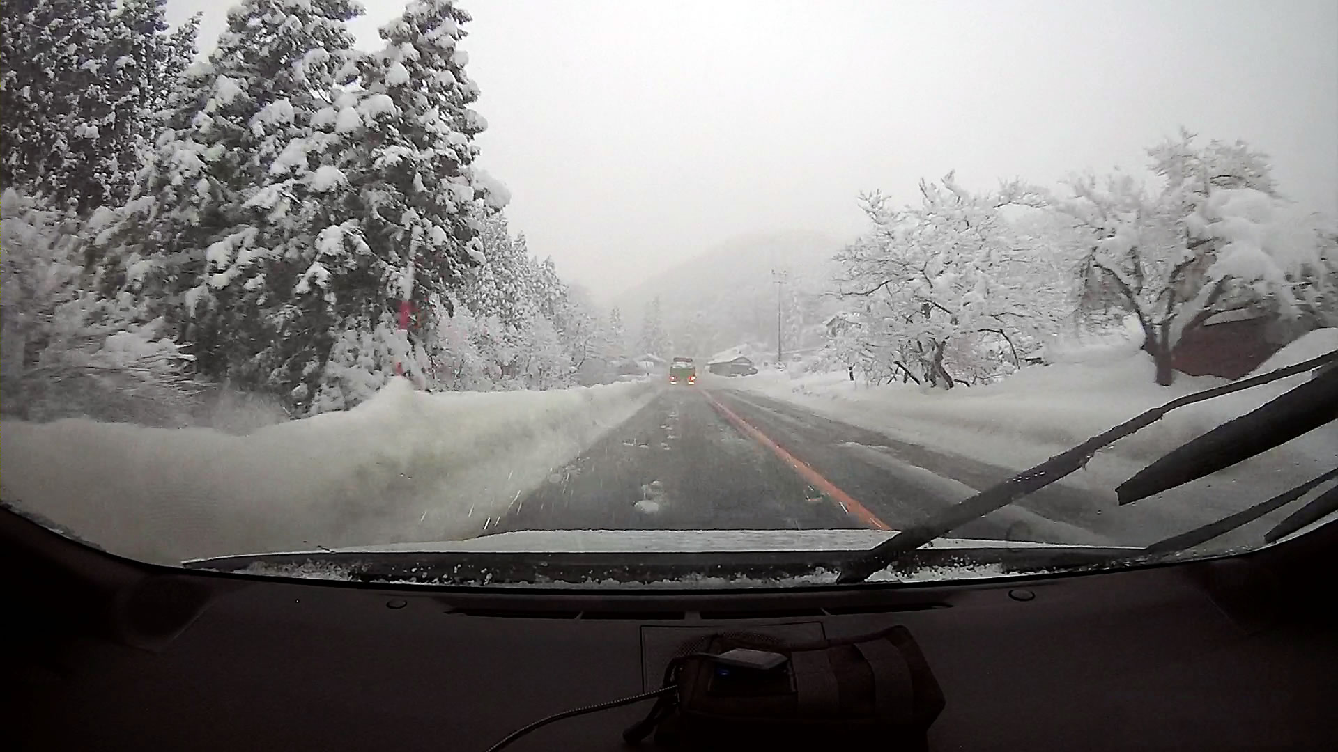 ほとんど自動車が走っていない京都の雪山を走るのとは違い