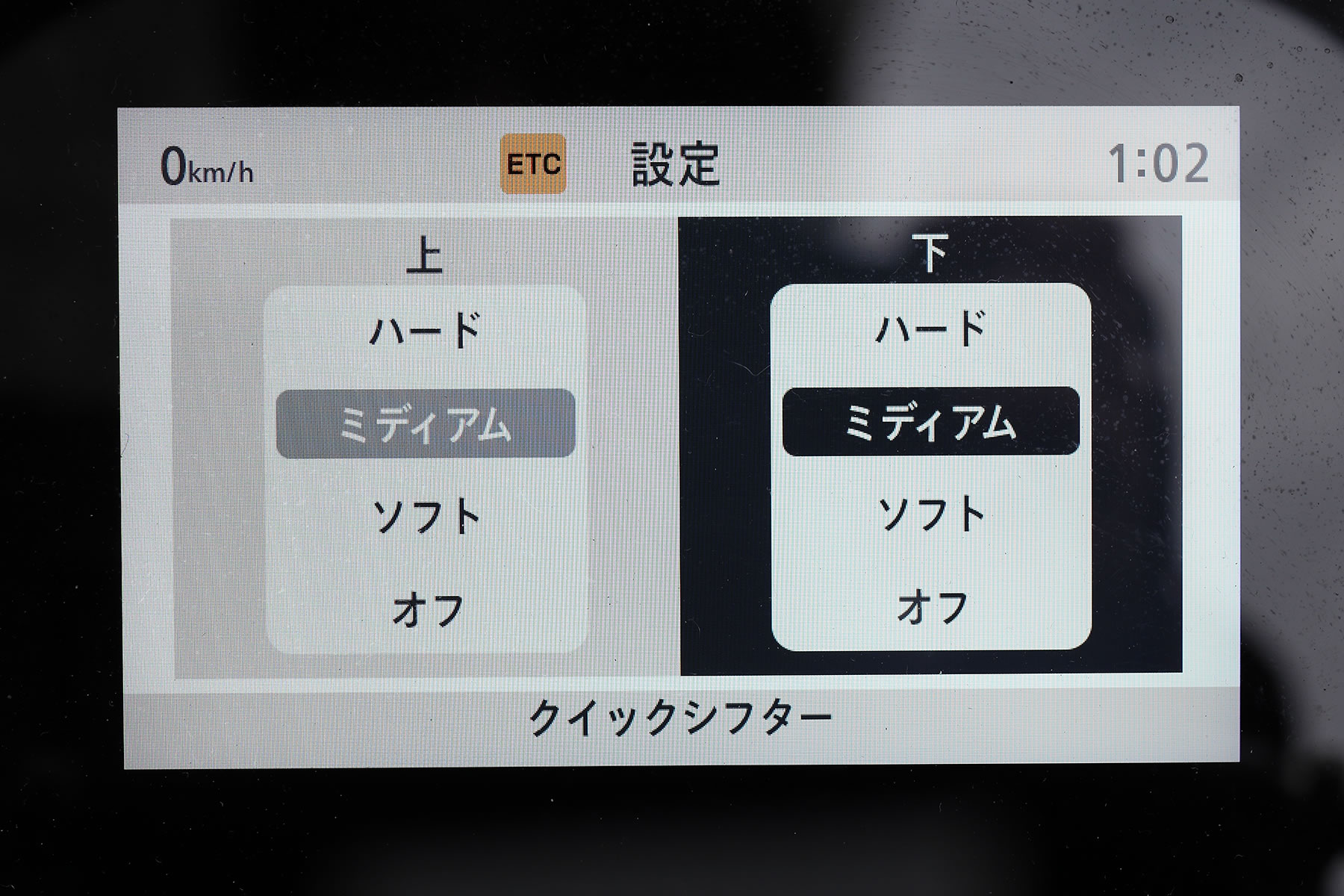 そういう場合は、クイックシフターの設定をハードにする訳ですが
