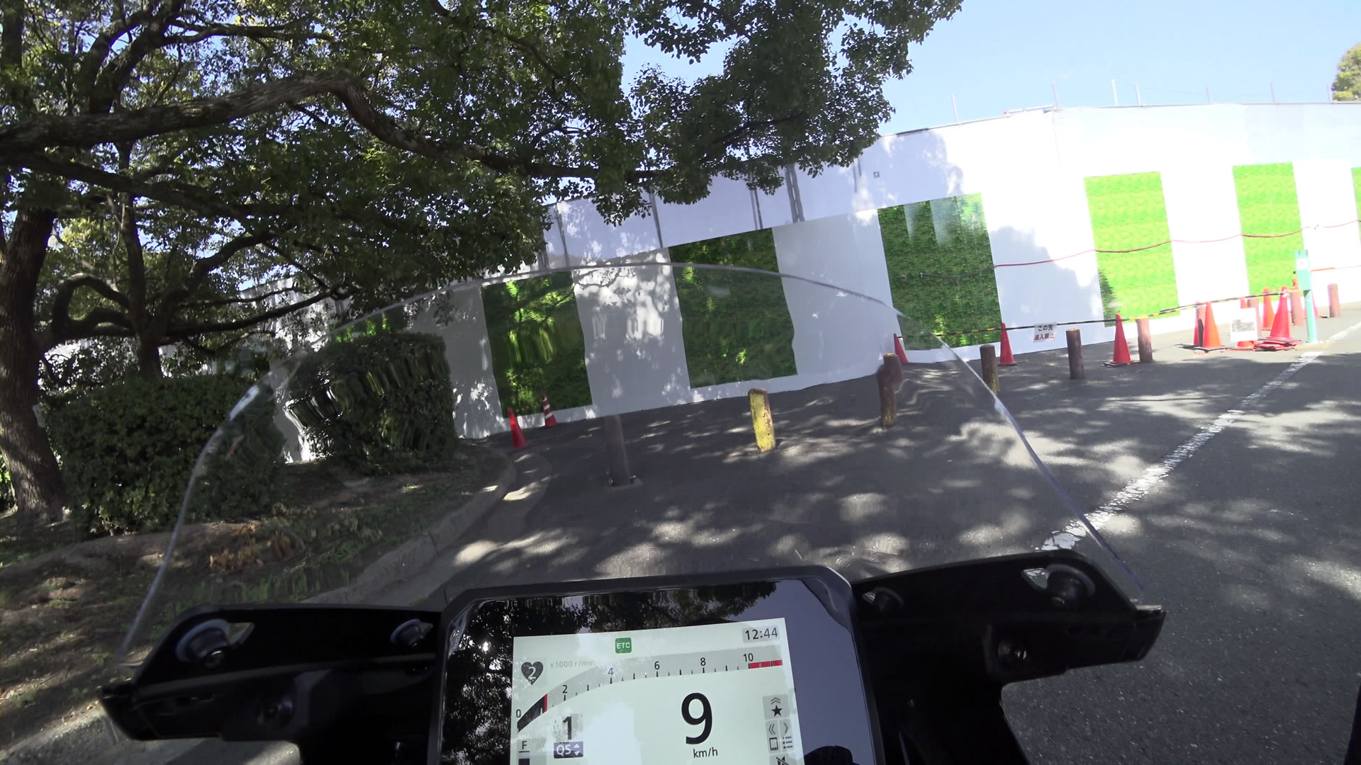大きなウインドスクリーンが映り込んだ映像になっていますが